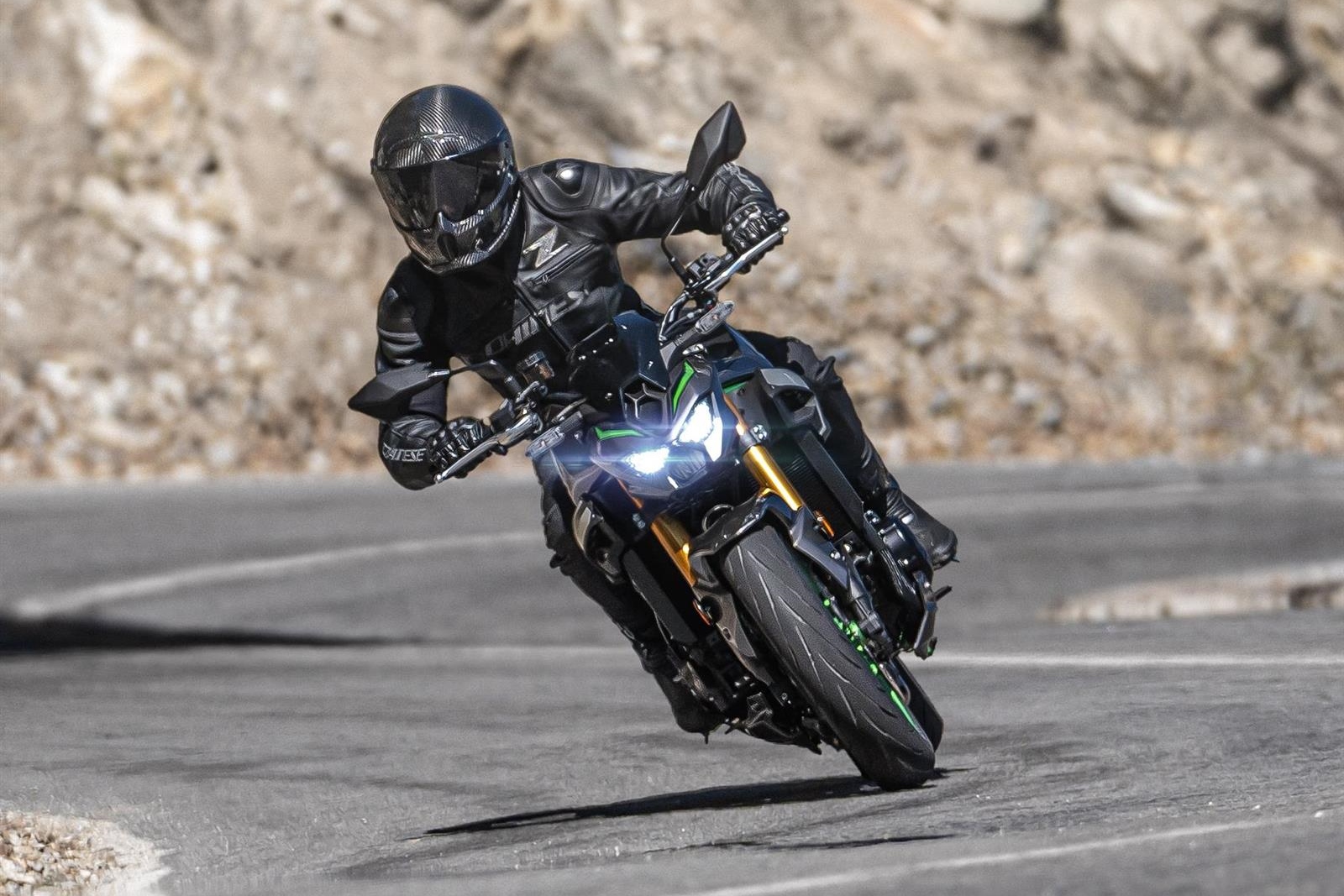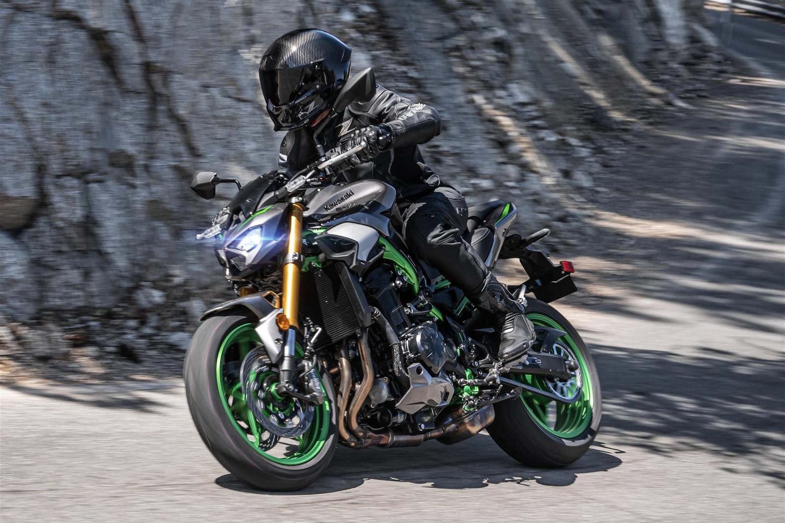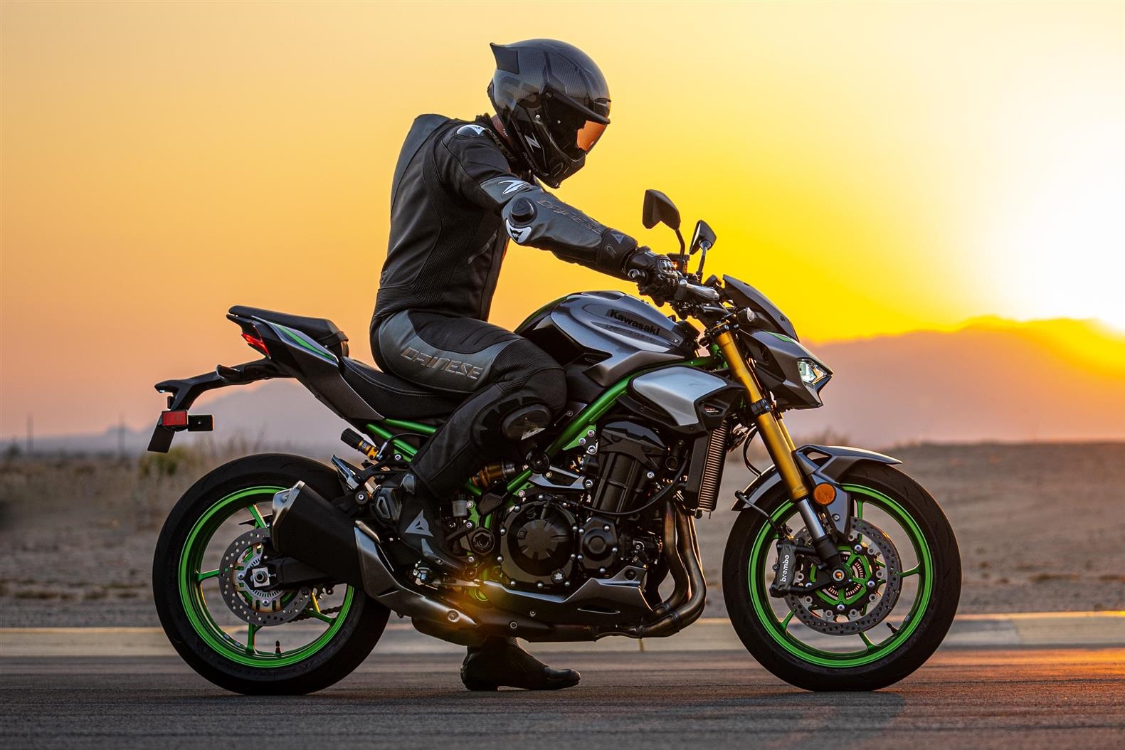 Dari segi dimensi, Z900 SE memiliki ketinggian tempat duduk 810 mm dan berat keseluruhan 214 kg, dengan tangki bahan api berkapasiti 17 liter — cukup untuk tunggangan jauh tanpa kerap mengisi. Reka bentuk ekornya yang padat serta lampu belakang gaya “floating” menambah penampilan moden dan agresif. Warna kombinasi Metallic Matte Graphite Gray / Ebony bersama kerangka Golden Blazed Green menyerlahkan identiti eksklusif varian SE ini.