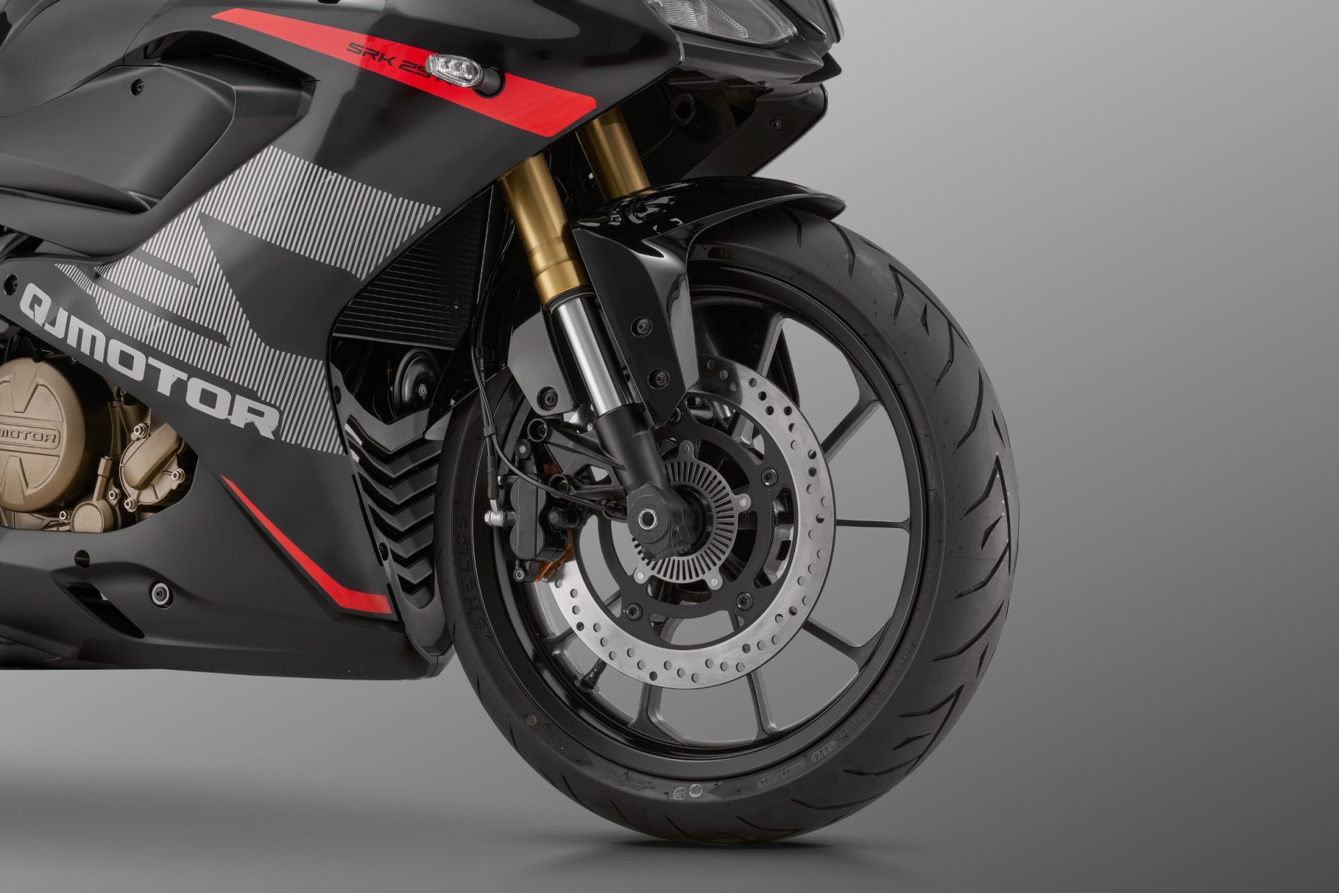 Ciri keselamatan juga menjadi keutamaan apabila SRK250R dilengkapi fork teleskopik terbalik (USD) di bahagian hadapan untuk pengendalian lebih mantap, dan suspensi monoshock boleh laras di belakang bagi keselesaan maksimum. Sistem brek cakera 300mm di hadapan dan 240mm di belakang hadir bersama ABS dwi-saluran, memberikan keyakinan tambahan semasa membrek di permukaan licin. Tayar 110/70-R17 di hadapan dan 140/60-R17 di belakang memastikan cengkaman stabil serta meningkatkan gaya sporty motosikal ini.