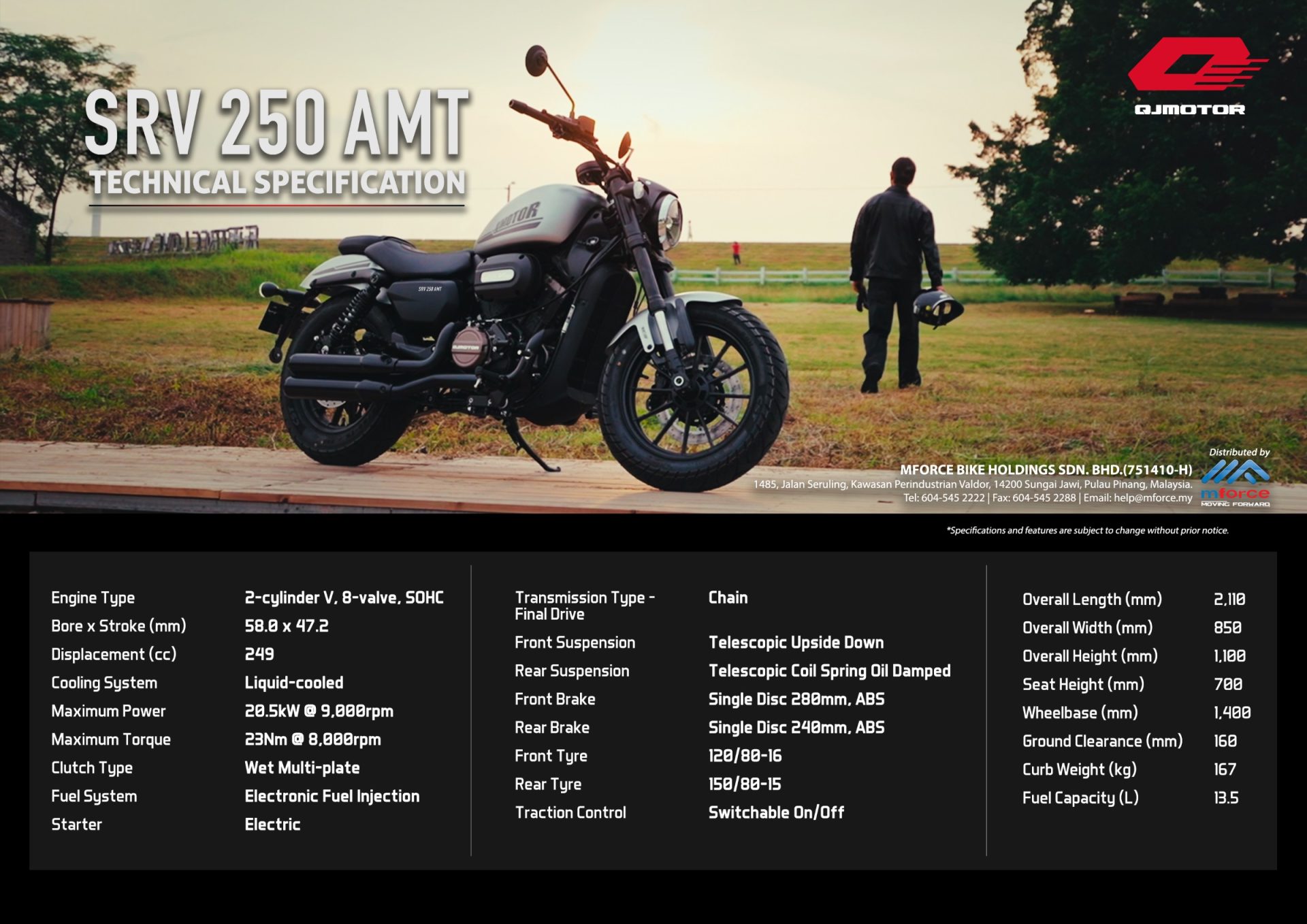 Dengan reka bentuk yang elegan, teknologi AMT yang memudahkan tunggangan, serta prestasi enjin yang mantap, QJMOTOR SRV 250 AMT 2025 bukan sekadar sebuah cruiser — ia adalah lambang revolusi baharu dalam dunia motosikal moden tempatan.