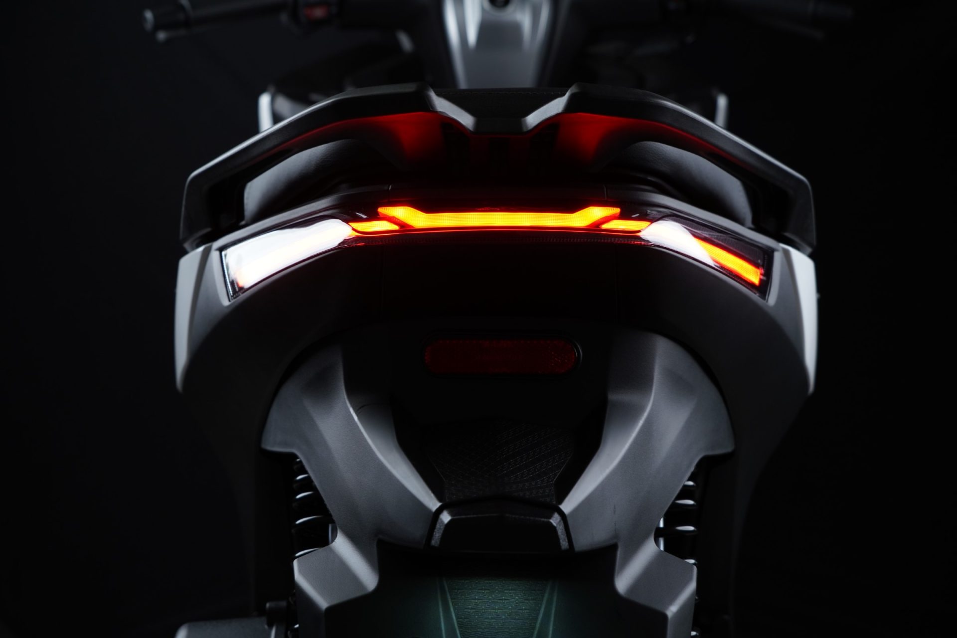 Sistem pencahayaan pula serba LED — lampu utama, belakang, isyarat membelok, DRL dan lampu hazard semua menggunakan LED penuh yang bukan sahaja menjimatkan tenaga, tapi bagi rupa yang lebih garang dan moden. Dan untuk keselamatan tambahan, ada Traction Control System (TCS) boleh ditukar (switchable), Tyre Pressure Monitoring System (TPMS) serta kamera pemuka hadapan untuk rakam perjalanan. Tak lupa juga suis keselamatan tapak sisi yang pastikan skuter tak hidup bila tongkat masih turun — ciri kecil tapi penting.